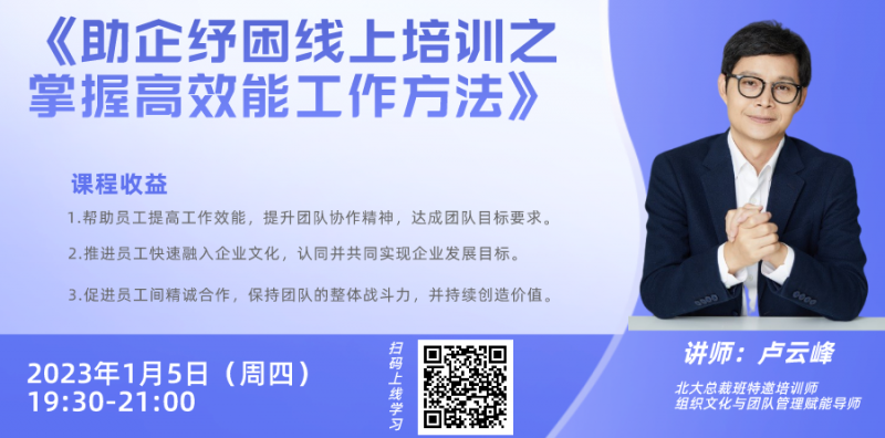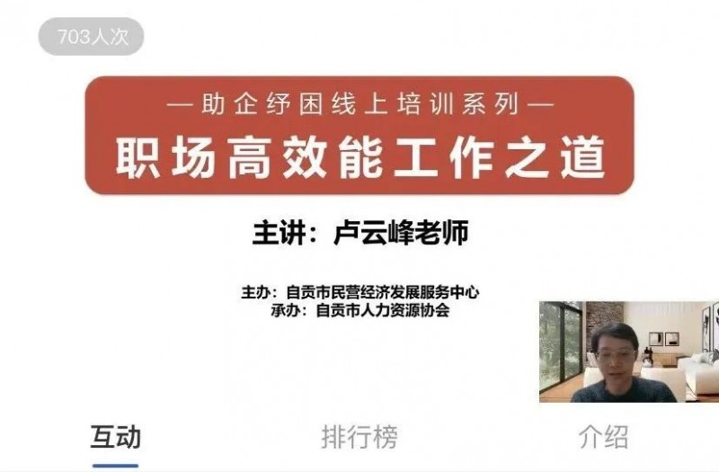 1月5日,我中心開展了《助企紓困線上培訓(xùn)之掌握高效能工作方法》成功開展,旭陽藥業(yè)、中港集團(tuán)、花語精細(xì)等專精特新企業(yè)在內(nèi)的40余家企業(yè)近700余人次上線學(xué)習(xí)。